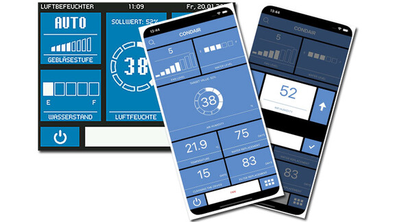 In addition to the integrated controller, a PureHum app allows users to control the humidifier and see all operating parameters from their mobile phone. Available on the App Store or Google Play, this feature is enabled via an optional WLAN/wifi module.