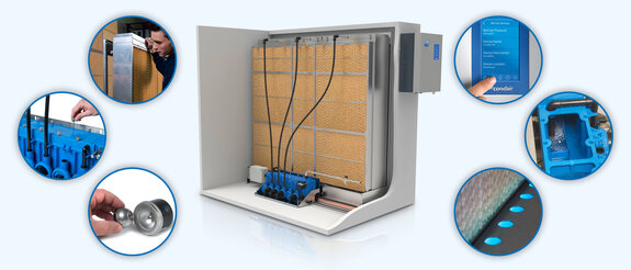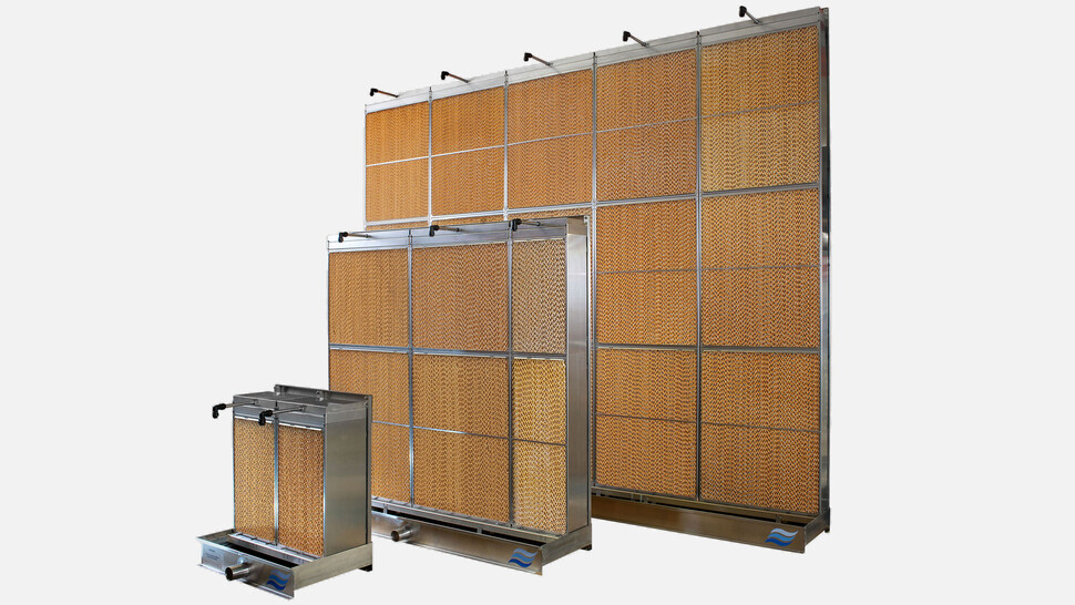 Evaporative modules are available in a range of sizes from 600mm to 4,200mm wide and 625mm to 4,000mm high.