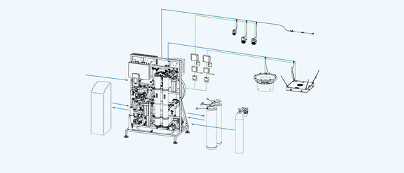 Vita Power produces germ-free, demineralised water – individually adapted to the available inlet water, such as simple drinking water.
