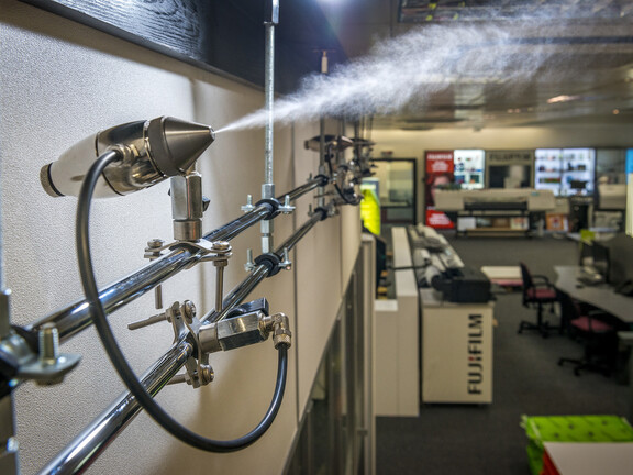 Humidity control for printing facilitiesA Condair JetSpray humidification system is maintaining an ideal 40-60%RH (relative humidity) in the Fujifilm Imaging and Innovation Centre in Bradford to provide the optimum atmospheric conditions for their paper storage and printing areas.