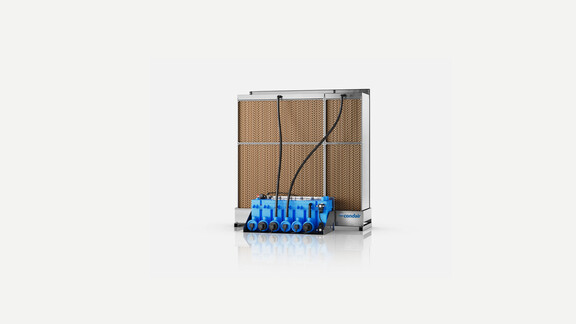 The Condair ME evaporative cooler is specially designed to meet the requirements of indirect exhaust air cooling. These include a simple structure, extremely economical operation, and durable components. The humidifier box achieves optimum values in its vaporizing effect.