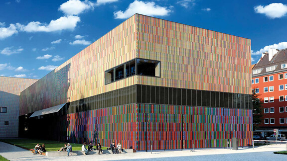 Located in the heart of Munich’s renowned Kunstareal (Art Quarter) in Maxvorstadt, directly adjacent to the Alte Pinakothek, Neue Pinakothek and Pinakothek der Moderne, the Brandhorst Museum opened in May 2009 as a striking new addition to the city’s museum landscape. Designed by the Berlin- and London-based architecture practice Sauerbruch Hutton, the building is instantly recognisable by its façade of 36,000 vertically mounted ceramic louvres in 23 different colours that create a shimmering, ever-changing play of light and hue.