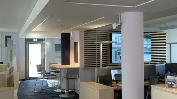 To ensure that the requirements of IT service workplaces are optimally met, the offices have been equipped with direct room humidification since 2014. The retrofitted air humidification protects employees from the special stresses of intensive screen work and speaking activities.