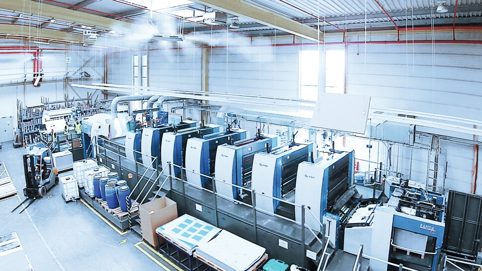 Small, permanently installed nozzle humidifiers hygienically bring the required amount of water into the room air when required, are barely noticeable and a noticeable improvement in working conditions for the employees.