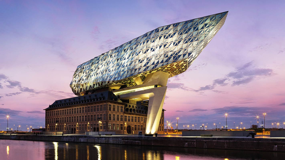 Since 2016, the Havenhuis has served as the headquarters of the Antwerp Port Authority, uniting a protected 1922 fire station with a bold, forward-leaning structure that evokes both a diamond and a ship’s bow. This fusion of old and new creates a striking presence along the waterfront and reflects the city’s identity as a centre of commerce and culture.