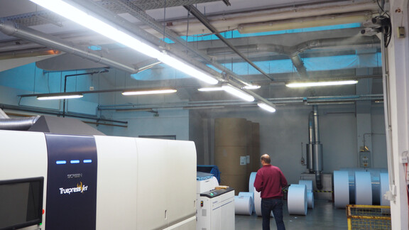 The DRAABE TurboFogNeo high-pressure system causes very low energy costs compared to compressed air technology. The small nozzle humidifiers can be positioned individually and adapt flexibly to the room conditions. The Maintenance: The water treatment and the high-pressure pump are installed in a small container, which is replaced by the manufacturer every six months. "This service gives us the certainty that everything always works safely and hygienically. We sometimes forget that we have air humidification at all, because everything just runs smoothly," says Simon István Krisztián happily.