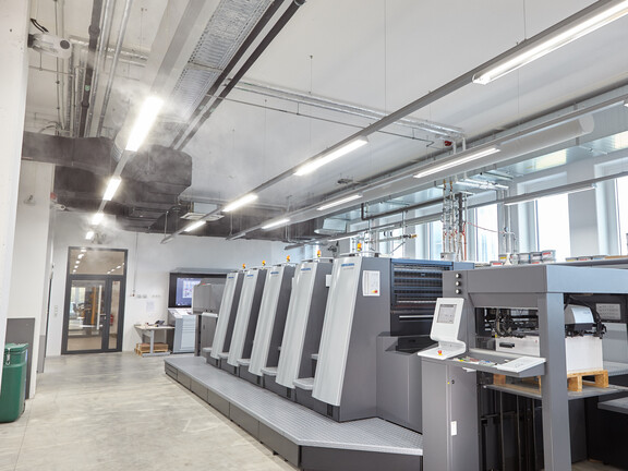"Fogra – researches, tests, certifies”: under this motto, around 50 employees develop application-oriented solutions for quality assurance. “We are the TÜV of the printing industry worldwide and provide answers to the question of how print results can be consistent for different machines, materials, and processes,” says Managing Director and Institute Director Dr. Eduard Neufeld, summarizing Fogra's tasks. The new building in Aschheim near Munich is individually tailored to the needs of the internationally active research institute: at 4,100 square meters, the usable space has almost doubled compared to the building previously used as a tenant. The property was made possible by three million euros in funding from the Free State of Bavaria. For Rainer Pietzsch, head of public relations, the new size of the institute has a positive double benefit: "The Verband Druck und Medien Bayern e.V. (Bavarian Printing and Media Association) has also moved in as a tenant. This allows us to work more closely together and share many rooms.