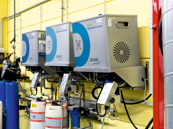 For air humidification, S+P Samson uses Condair direct room air humidification with high-pressure nozzles, which has been expanded several times since 2001. Individually designed for the required humidification capacity, small DI Flex nozzle humidifiers generate a micro-fine spray mist that is immediately distributed almost invisibly in the room air. The system is controlled by hygrometers distributed throughout the rooms, which continuously monitor the humidity and only activate humidification when necessary, maintaining it at the desired level. Hygienic operation is ensured by the system's own water treatment, which produces germ- and mineral-free water. The central components of the Condair water treatment system are installed in transportable containers, which are automatically sent by the manufacturer every six months as part of a full-service maintenance package. The replacement of the fully serviced and disinfected systems is carried out by S+P Samson in just a few minutes. The company does not have to worry about any further maintenance and cleaning measures. Due to its ease of maintenance and high hygiene standards, the Condair Direkt room system has been awarded the “Optimized Air Humidification” test mark by the German Social Accident Insurance (DGUV) and is certified according to VDI 6022 Sheet 6.
