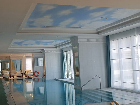 Kiran Nair, Sales Engineer at Mentor Trading commented “The ceiling mounted dehumidifiers are compact in size and were fixed above the pool and spa areas, in an upper floor. Air grilles, which extract humid and return dry air, are discretely located above the swimming pools, in a painted, cloudy-blue-sky ceiling scene, designed to further enhance the relaxing spa environment.”