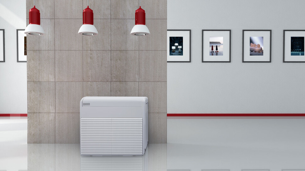 There are two main types of commercial dehumidifier – condensing and desiccant. Desiccant is ideal for very low humidity levels or cold temperatures, whilst condensing efficiently dries at mid-range temperatures and humidity above 50%RH. As museums and galleries tend to operate in this mid-temperature and humidity range, condensing units are a popular choice for in-room dehumidification, as the energy consumption is roughly half the equivalent desiccant option.