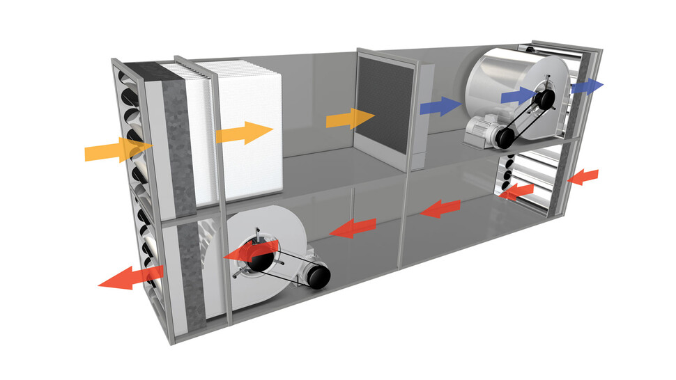 As the internal air never mixes with the outside air, there is a reduced possibility of the internal atmosphere being compromised by external pollutants so this is an ideal strategy for critical environments. It also allows the velocity of the outside air stream through the heat recovery unit to be much greater than the internally circulating air, thus “scavenging” even greater levels of cooling from the system.