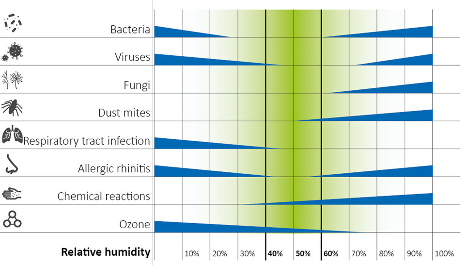 The body's respiratory immune system needs a mid-range humidity to remain robust and protect health.