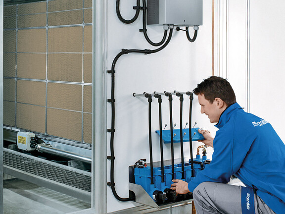 In the past gas-fired humidifiers have suffered from being difficult to service. However, modern systems, such as the Condair GS, incorporate several features to make them maintenance-friendly. In order to discourage scale build-up the Condair GS continually introduces a small amount of fresh water to the boiling chamber and drains water with high mineral content. By maintaining a low mineral content in the water tank, scale is minimised and the need to run a full drain to combat scale is removed. This in turn results in more consistent humidity control without a drop in output and a lower service requirement.