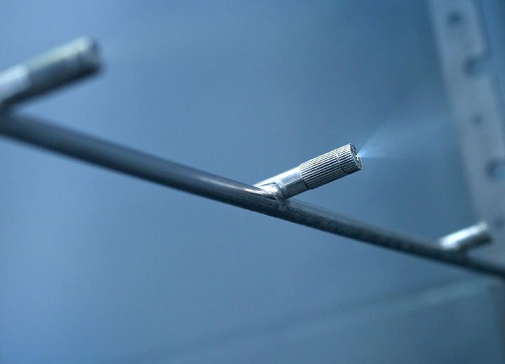 The Condair HP delivers adiabatic humidification and cooling to an air handling unit (AHU) or duct. A series of nozzles mounted across the air stream atomise water under high pressure creating a fine mist that is rapidly absorbed. A droplet separator downstream removes any un-evaporated moisture from the air ensuring droplet-free humidification.